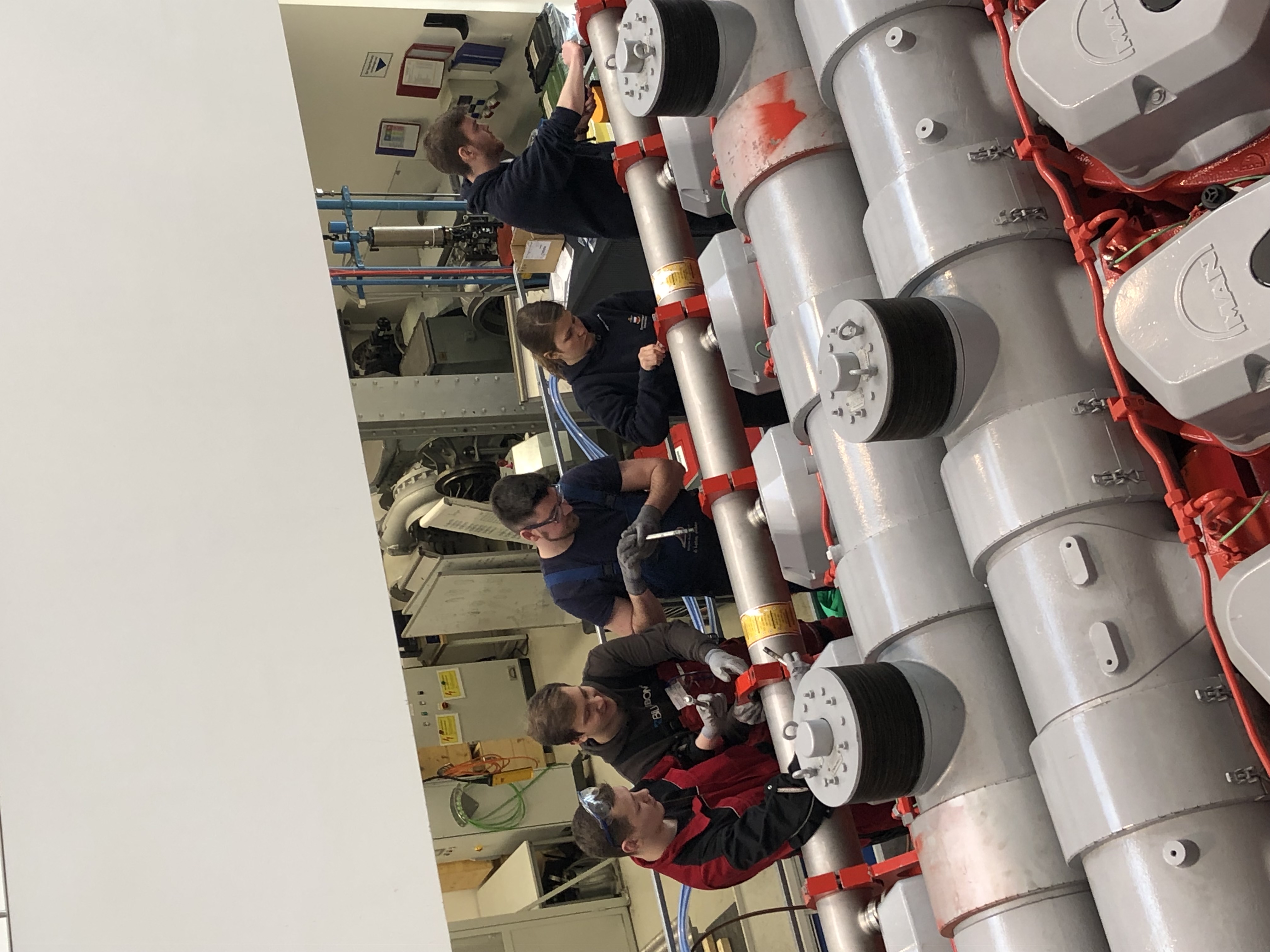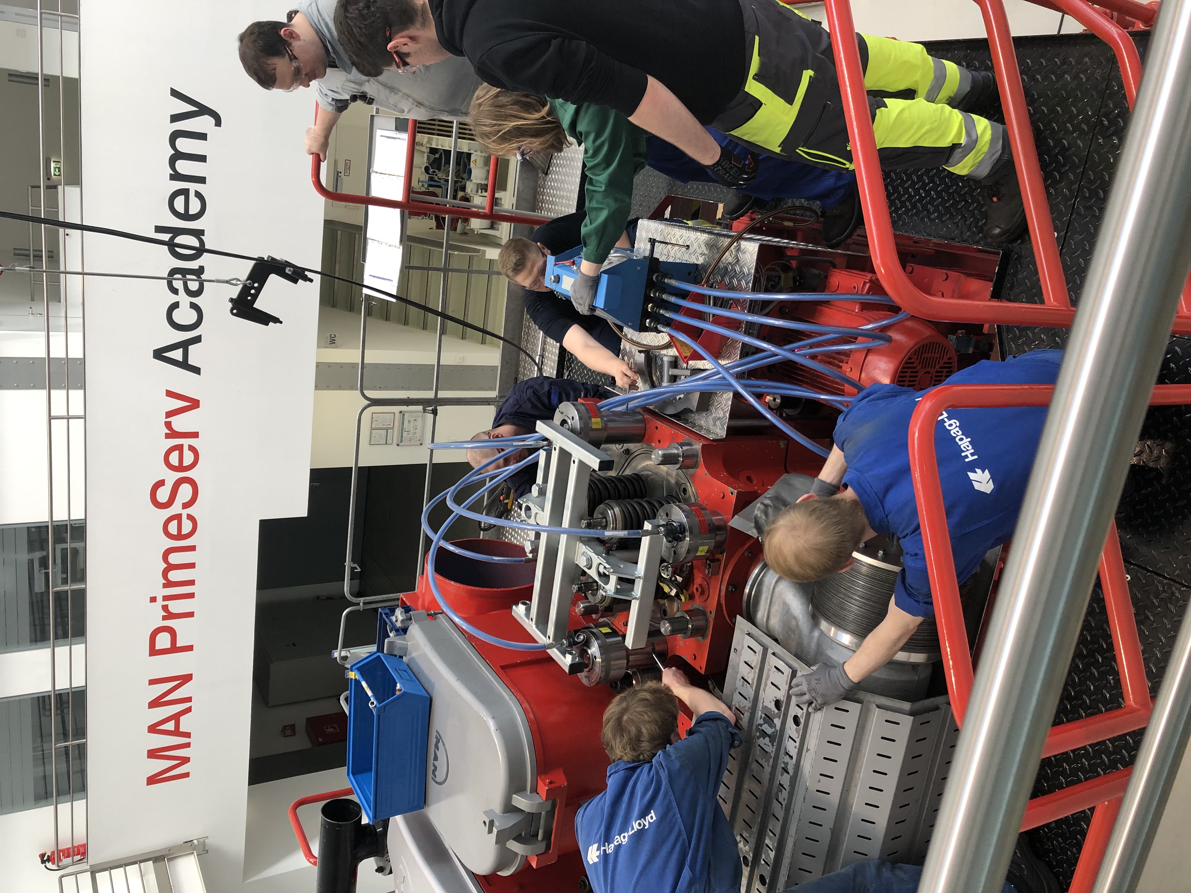 Wir, das heißt 6 Schüler der Fachschule für Seefahrt und 6 Student*innen der Hochschule Flensburg und ich, sind am 20.02.23 nach Augsburg gereist. Am Morgen des 21. Februar standen alle pünktlich um 8.10 Uhr vor dem MAN- Gebäude. Nach dem Aushändigen der Namensschilder sind wir zur Academy gegangen, wo wir schon von Lukas Matt und Jan Bauer erwartet wurden. Nach dem Briefing wurden wir in 2 Gruppen eingeteilt und an den 51/60 für die Fachschüler und den 35/44G für die Student*innen verteilt und eingewiesen.