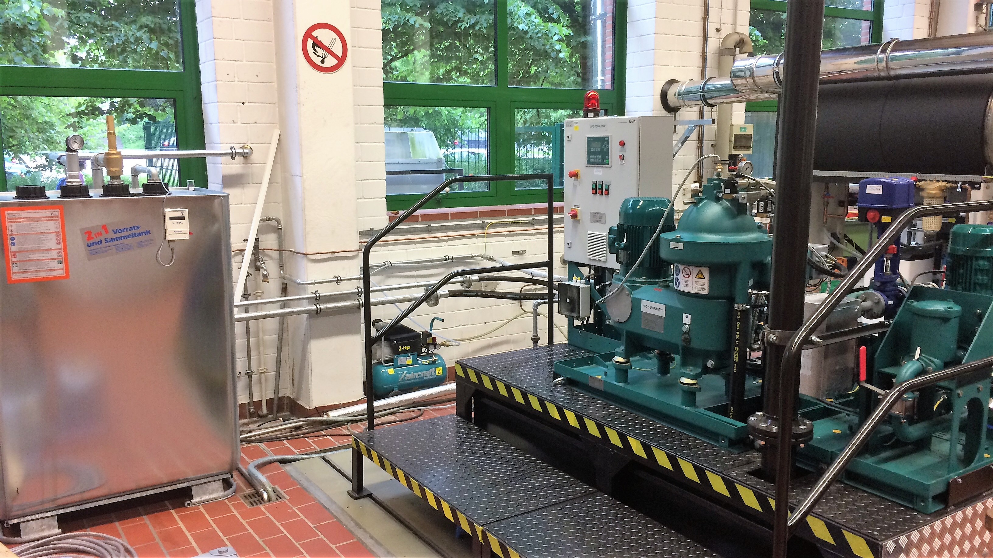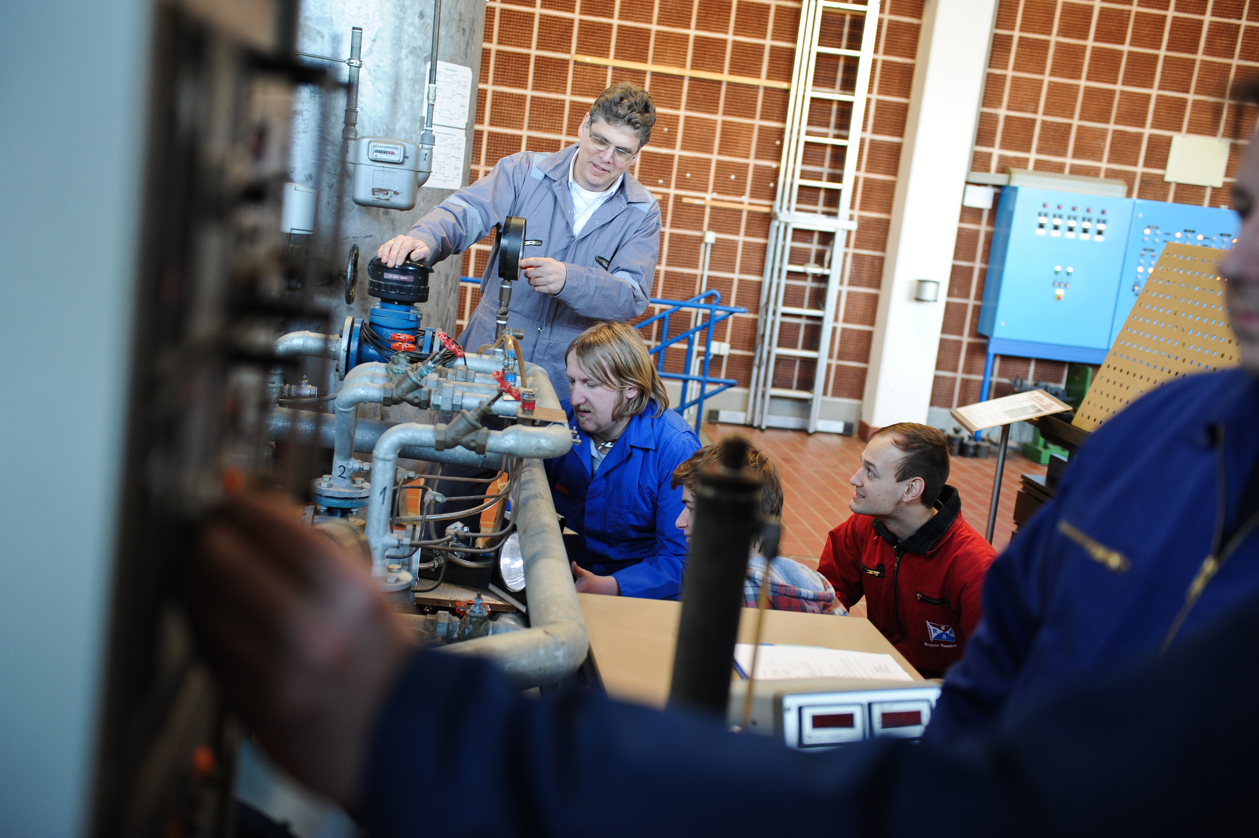 Die Durchführung von praktischen Laborübungen an Hilfsmaschinen und Motoren findet in der Maschinenhalle statt. Hier werden Übungen an Pumpen, Filtern, Klimaanlagen, Wärmetauschern und weiteren Hilfssystemen durchgeführt und anschließend ausgewertet. Die Versuche orientieren sich an praxisnahen Aufgabenstellungen und ergänzen gezielt den Theorieunterricht und die Ausbildung im Simulator.